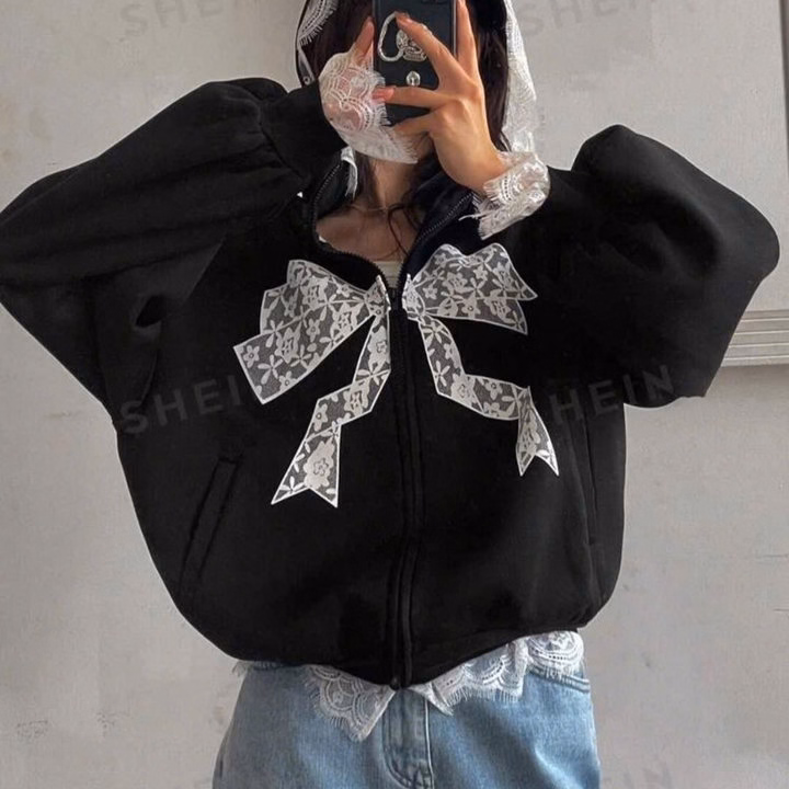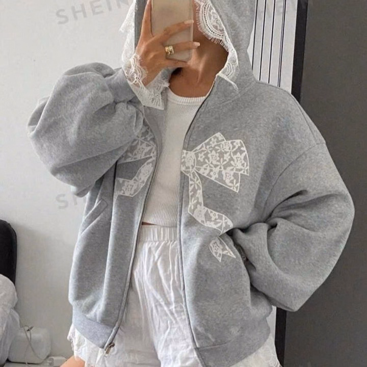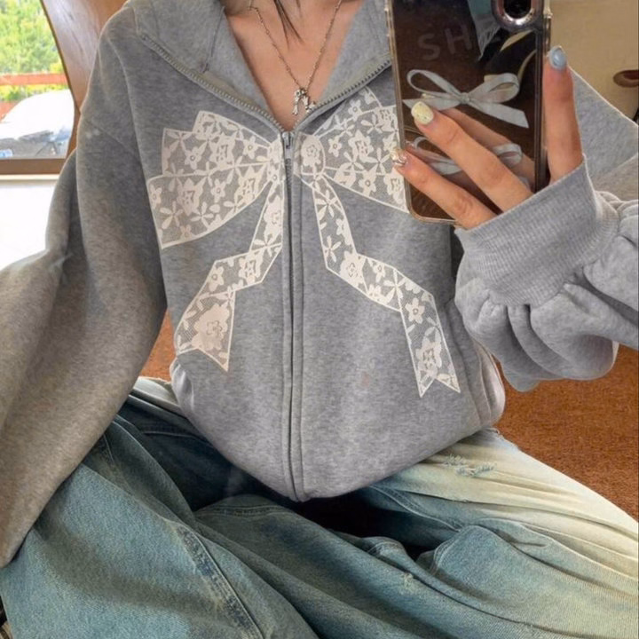 Áo Khoác Hoodie Nữ Cột Nơ Có Nón – Htm Fashion