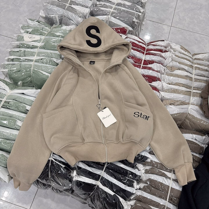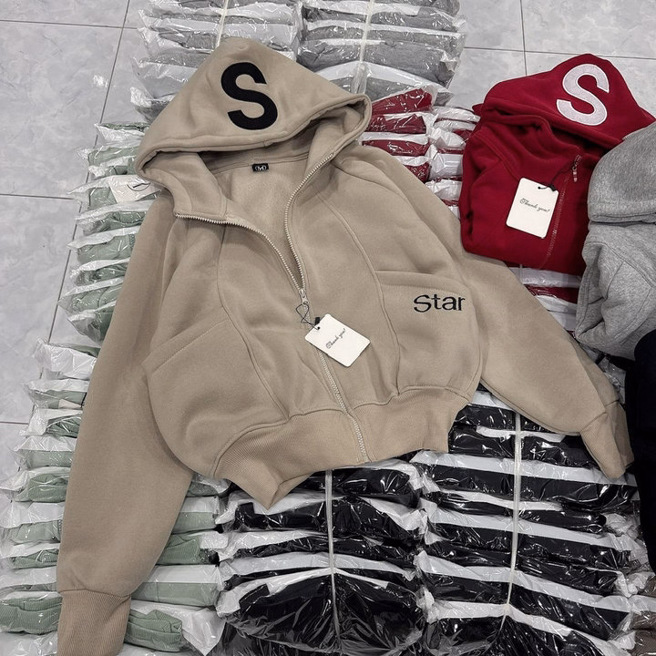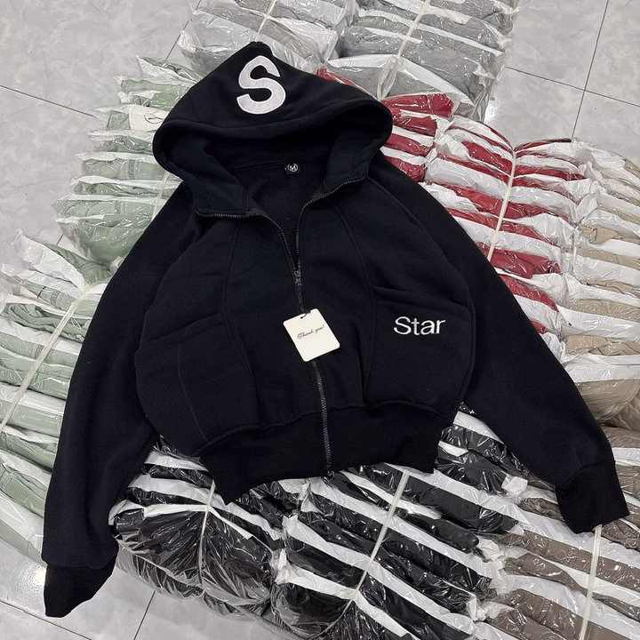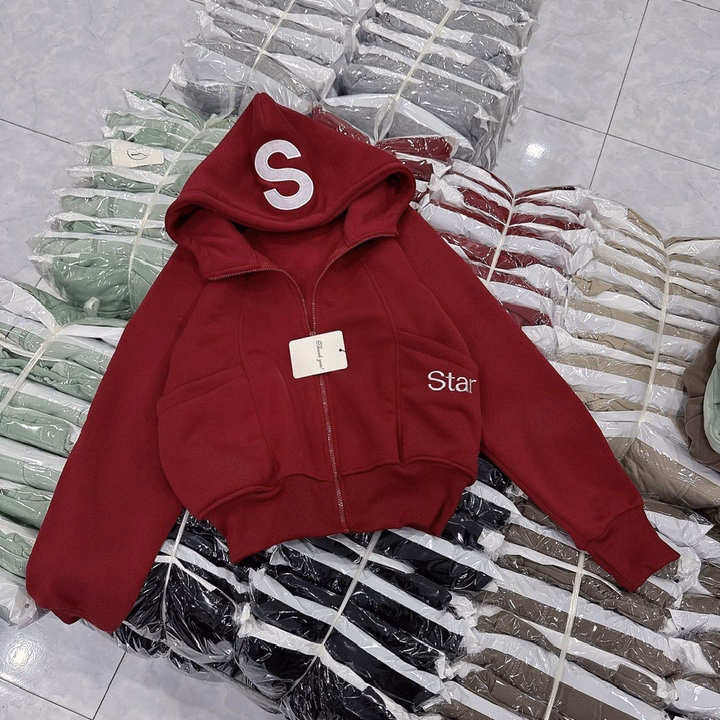 Áo Khoác Hoodie Nữ Croptop Nữ Thêu Chữ S Ở Nón – Htm Fashion