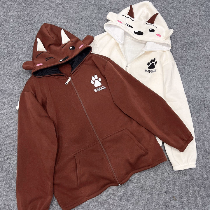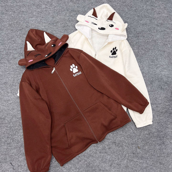 Áo Khoác Hoodie Nữ In Chân Mèo Có Nón 2 Sừng Chóng Nắng – Htm Fashon