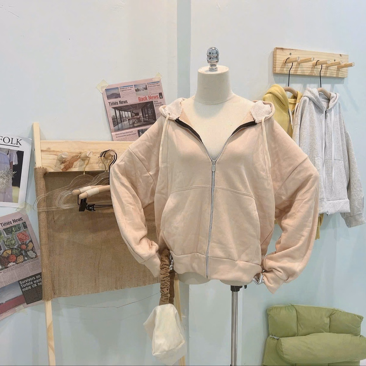Áo Khoác Hoodie Nữ Nỉ Form Rộng Cánh Tay Phối Theo Phong Cách Hàn Quốc Chất Vải Siêu Dày Dặn Hàng Hot Trend-Htm Fashion
