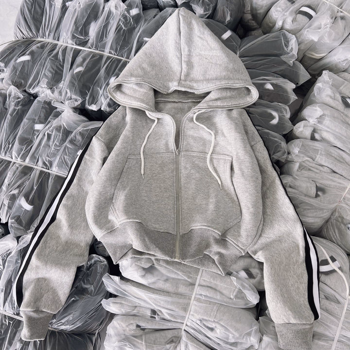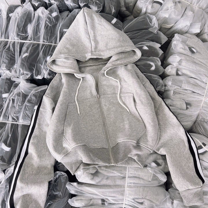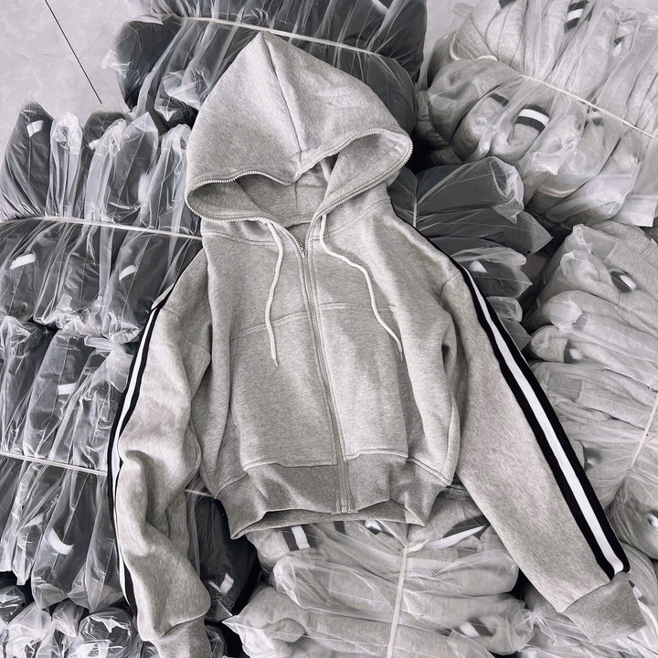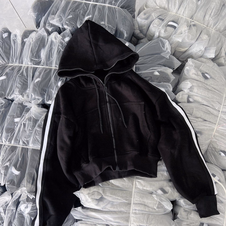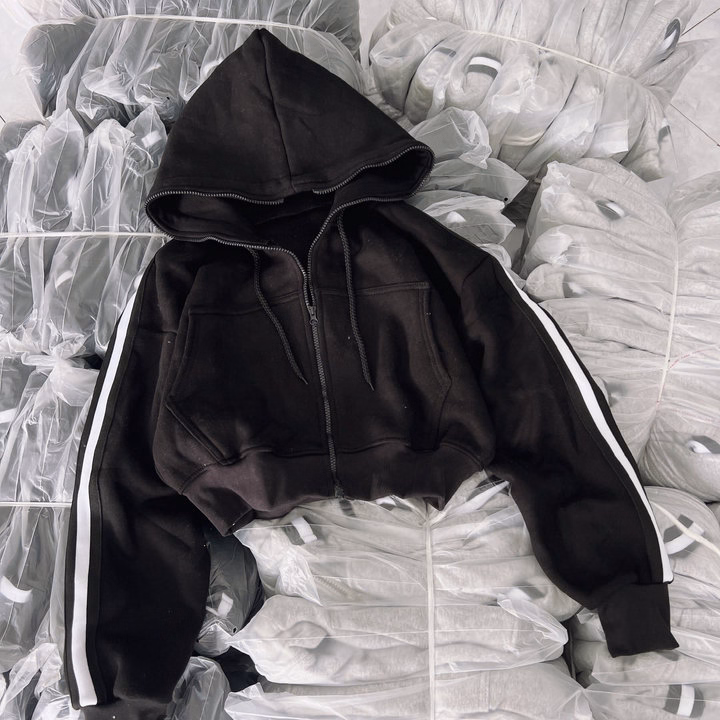 Áo Khoác Hoodie Nữ Trơn Có Nón Phối Sọc Cổ Cao Chống Nắng Siêu Đẹp – Htm Fashion