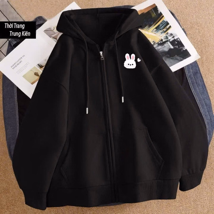Áo Khoác In Hình Thỏ Trái Tim Chất Nỉ