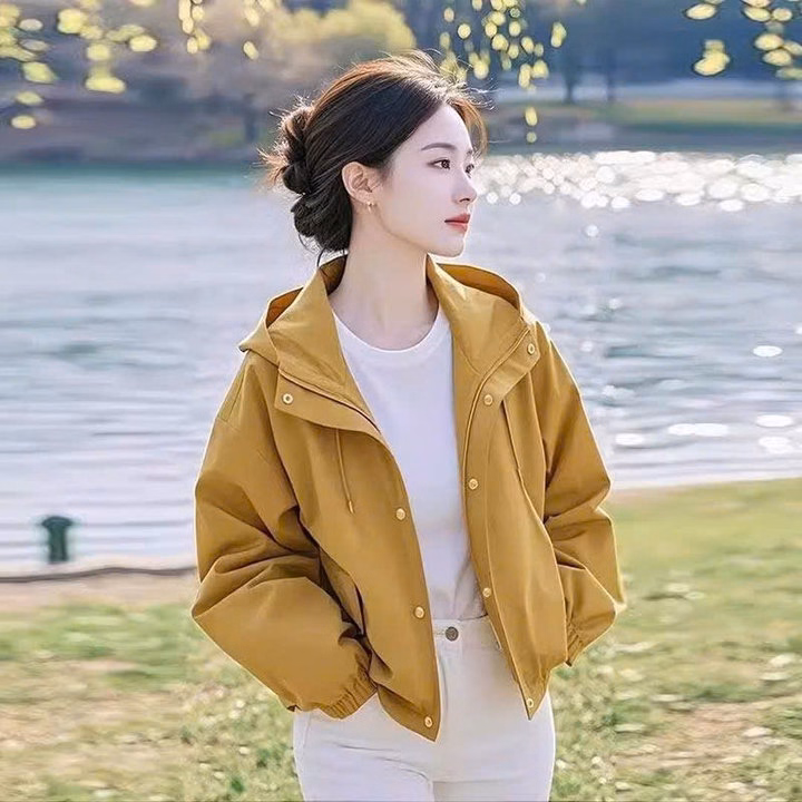 Tên sản phẩm: Áo Khoác Kaki 2 Lớp Nữ Form Lửng Mũ Rộng Lót Cùng Màu Xinh Xắn Ut30 – Golden Dream