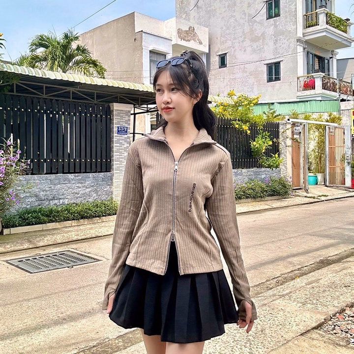 Áo Khoác Croptop Lửng Nữ Có Túi Trong Tay Xỏ Ngón Thêu Nổi Prfc – Htm Fashion