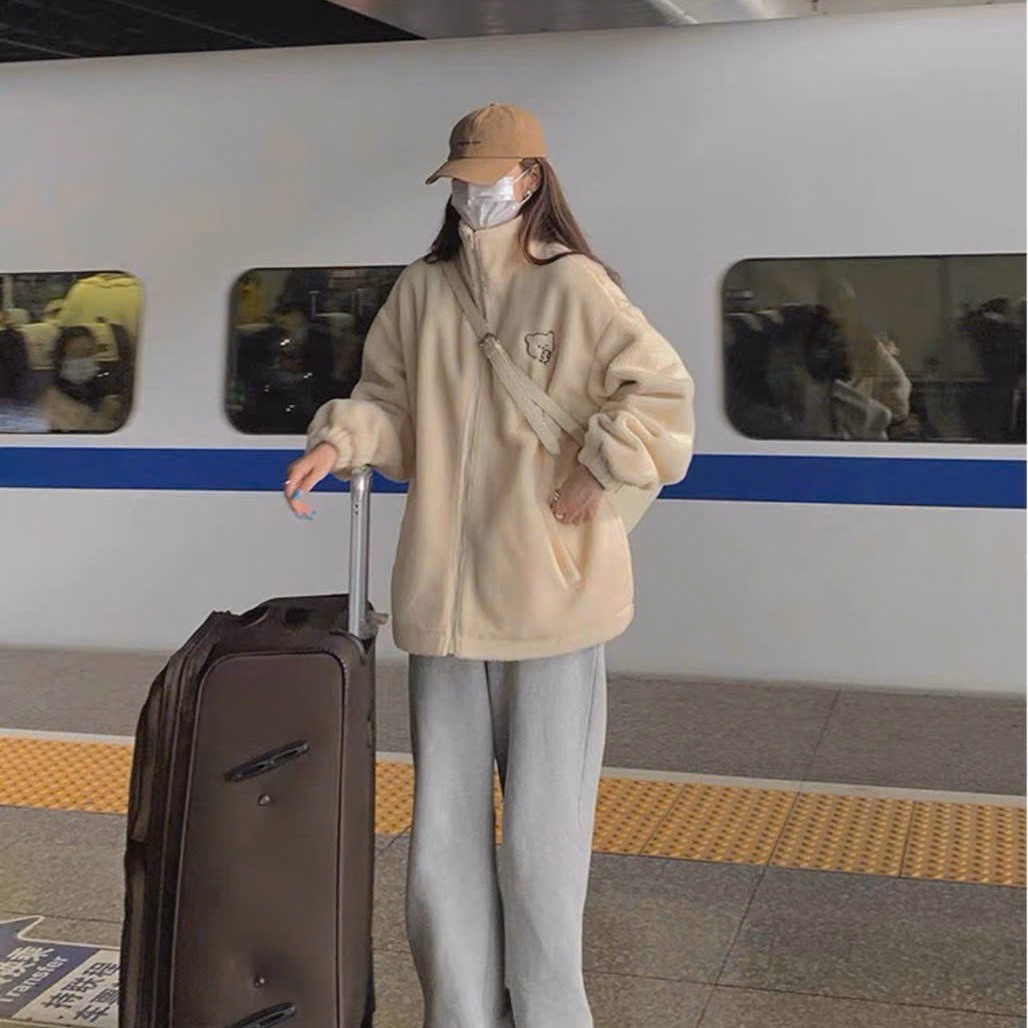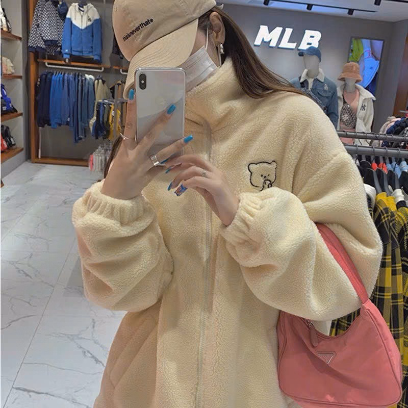 Áo Khoác Lông 2 Lớp Phối Kiểu Dáng Cao Có In Bé Gấu dễ Thương Chất Vải Dày Dặn Fdorm Rộng Hàng Hot Trend-Htm Fashion