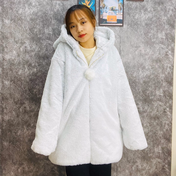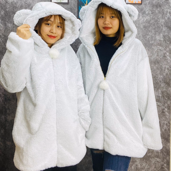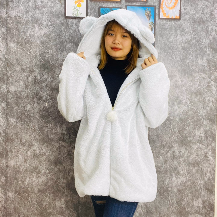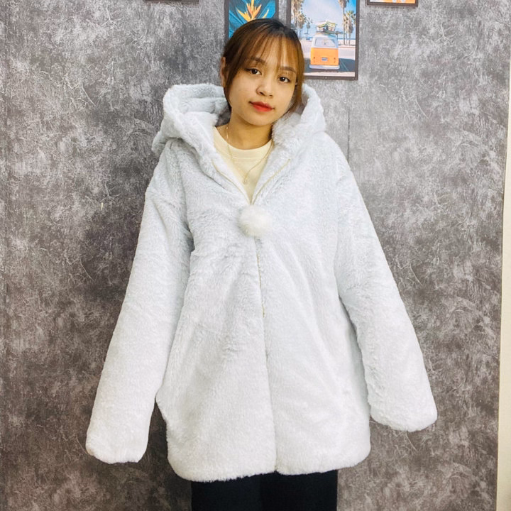 • – Tên Sản phẩm: Áo khoác lông gấu Dáng Dài màu Xám Nhạt