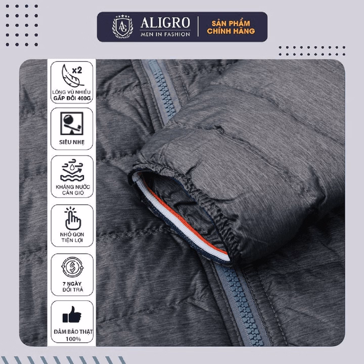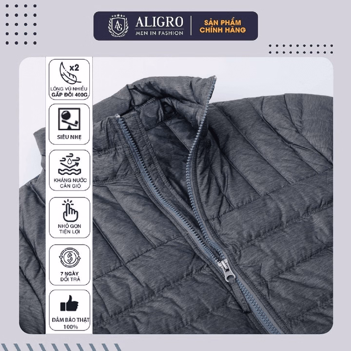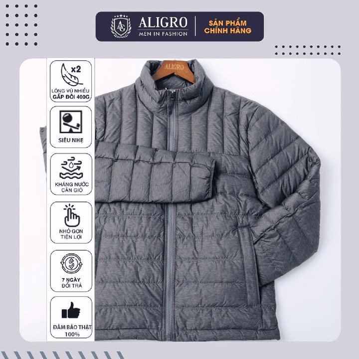Áo Khoác Lông Vũ Màu Đen Chất Liệu Cao Cấp Mềm Mịn Siêu Nhẹ Giữ Nhiệt Aligro Algalv.23 – Aligro