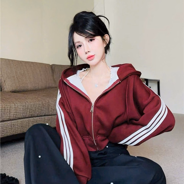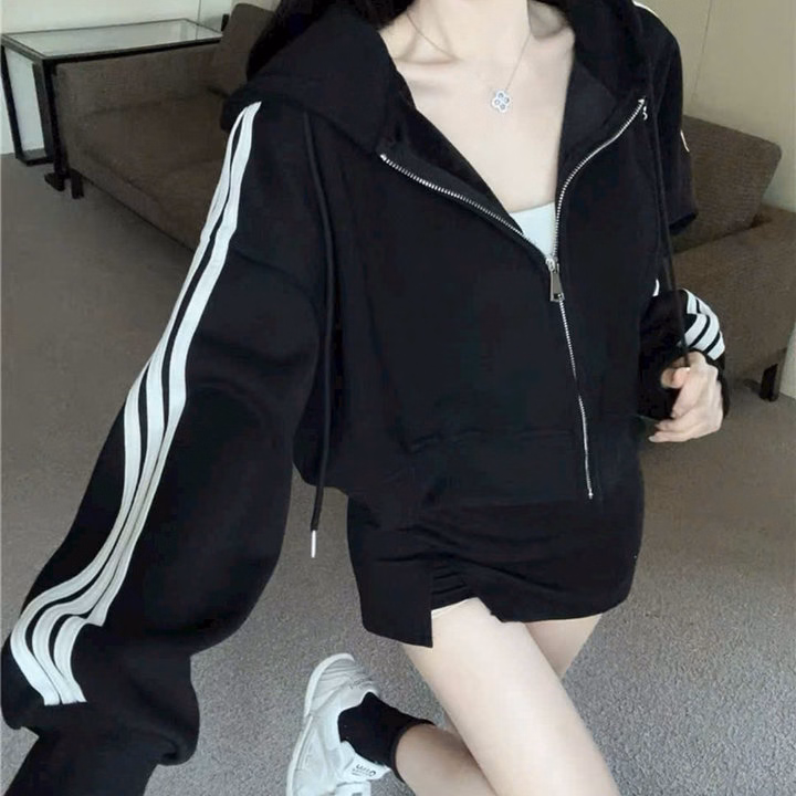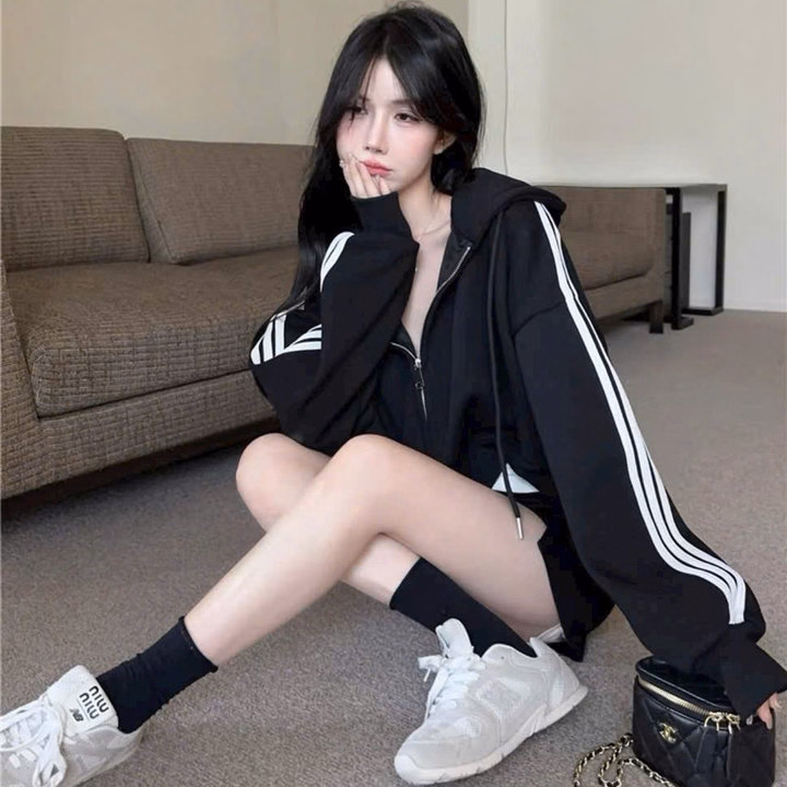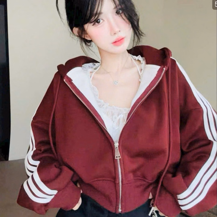 Áo Khoác Dây Kéo Vải Nỉ Phối Sọc Thân In Nổi Chữ Ở Mũ, Có Túi Trong Rộng Tp60 – Golden Dream