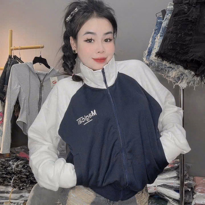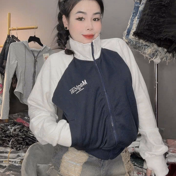 Áo Khoác Lửng Nữ Cổ Trụ Phối Tay Áo Khác Màu Thêu Chữ Magggic Tp80 – Golden Dream