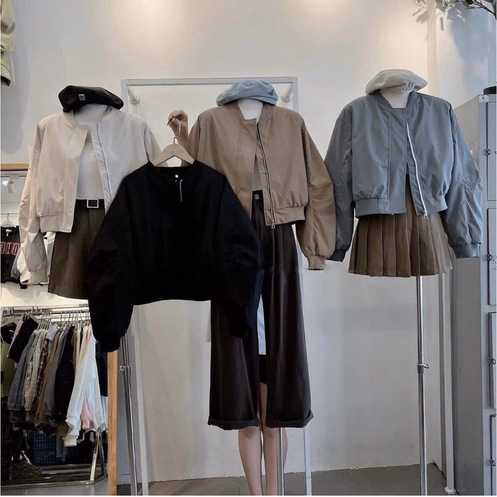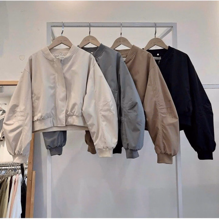 Áo Khoác Lửng Nữ Da Lộn 2 Lớp Áo Vải Trơn Bo Chun Cá Tính