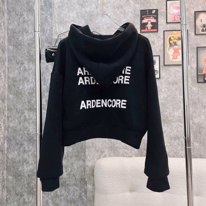 Tên sản phẩm: Áo Khoác Lửng Nữ Vải Nỉ Pc Dày Mịn Bo Dệt Nón Rộng In Chữ Lưng Arden Tp093 – Golden Dream
