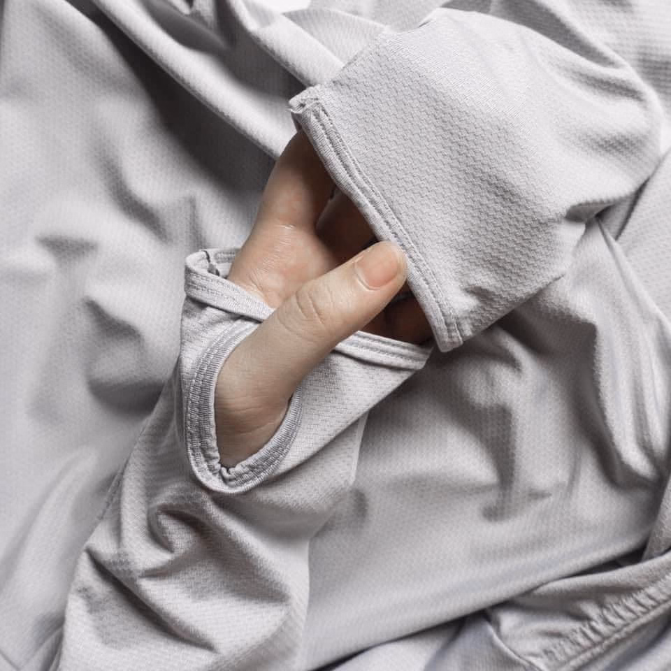 Chất vải mát, thông hơi Airism mềm mịn, chống nắng siêu thích với chỉ số Upf 50. Có tay áo dài che nắng.