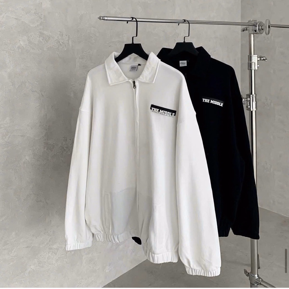 Áo Khoác Nam Nữ Phối Dáng Form Rộng Tay Dài Mang Sự Cá Tính Trước Áo Có In Chữ The Middle Bao Sắc Nét Và Đẹp Chất Vài Mát Mẻ Áo Đẹp Hàng Hot Trend-Htm Fashion