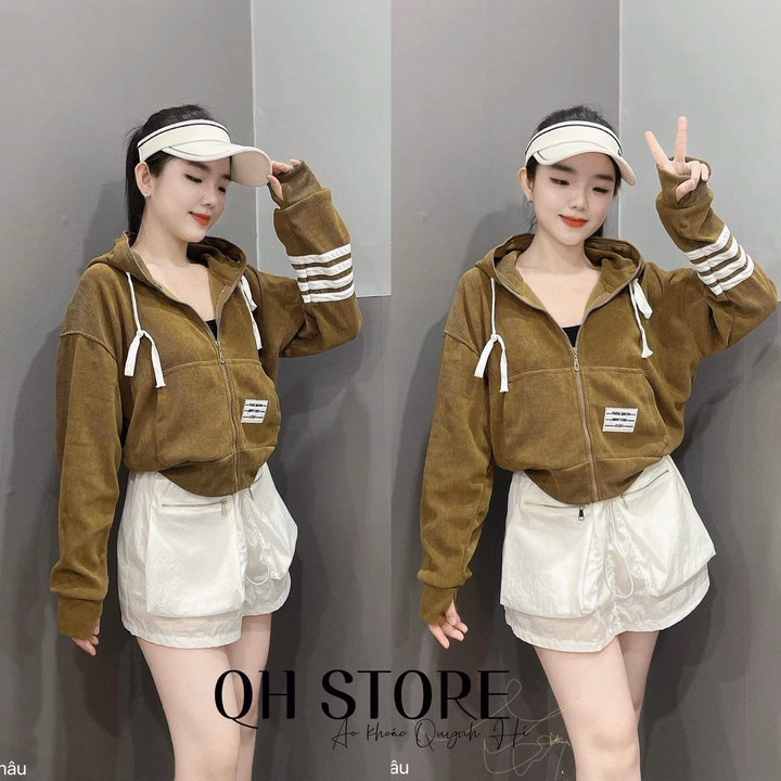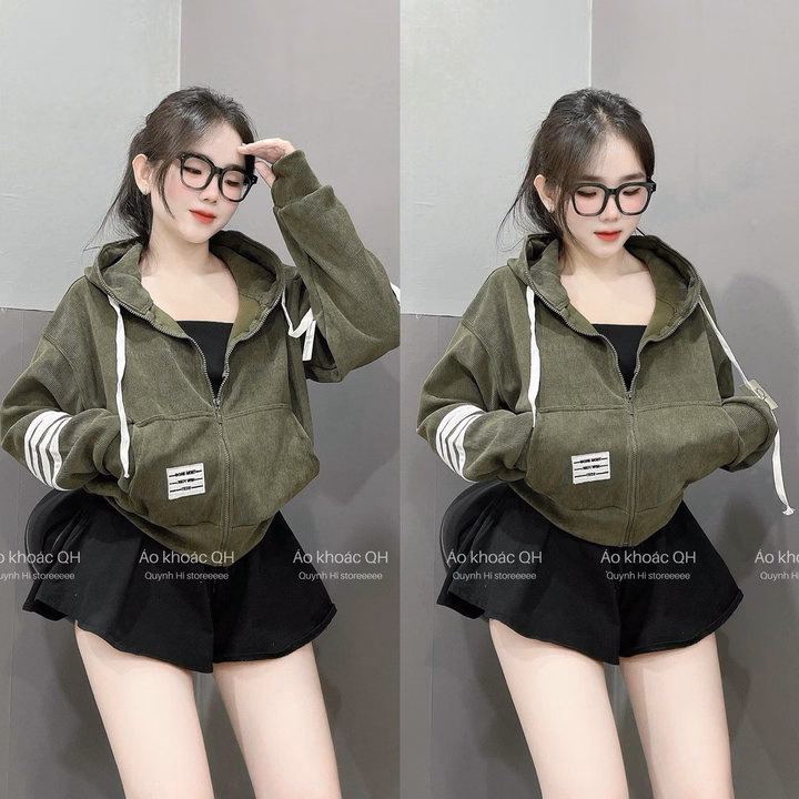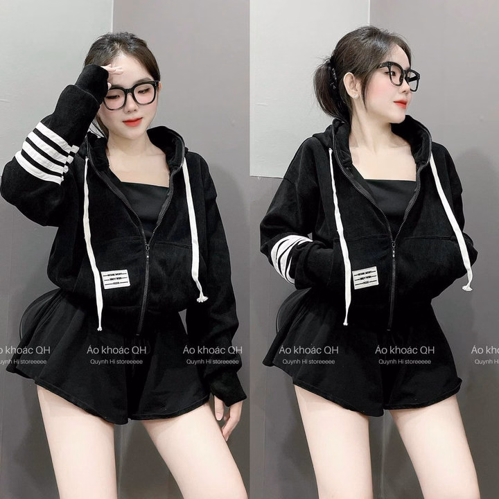 Áo Khoác Nhung Tăm Nữ Dáng Lửng Trơn Thêu 4 Sọc Tay Chất Vải Nhung Dày Thời Trang – Htm Fashion
