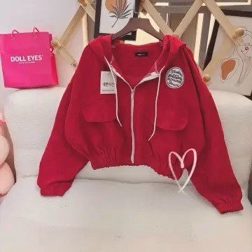 Áo Khoác Croptop Nỉ Nữ Dáng Lửng In Lá Cờ 2 Mặt Trước Sau Có Nón Chống Nắng – Htm Fashion