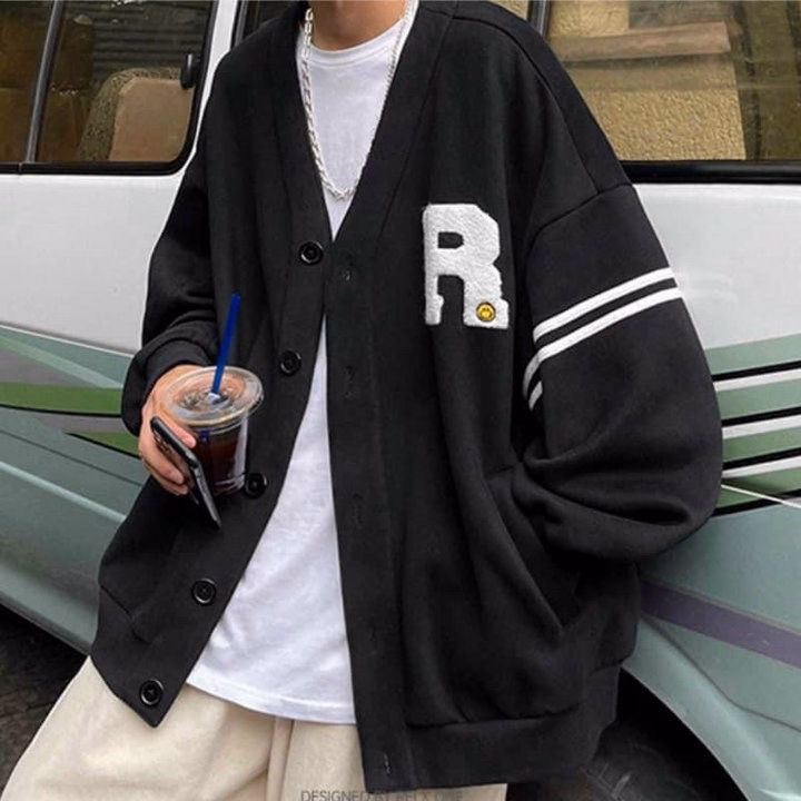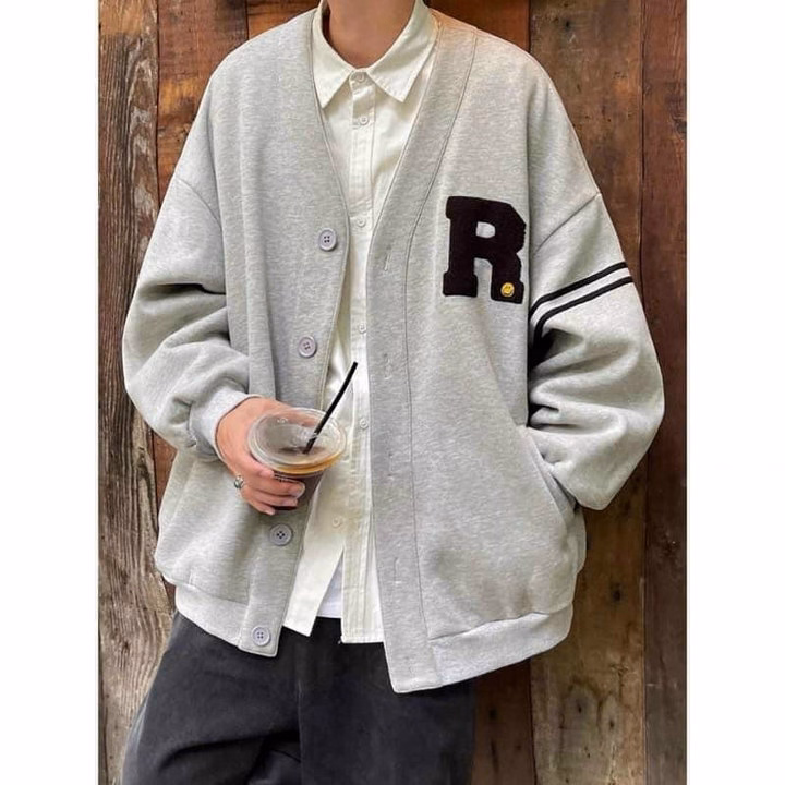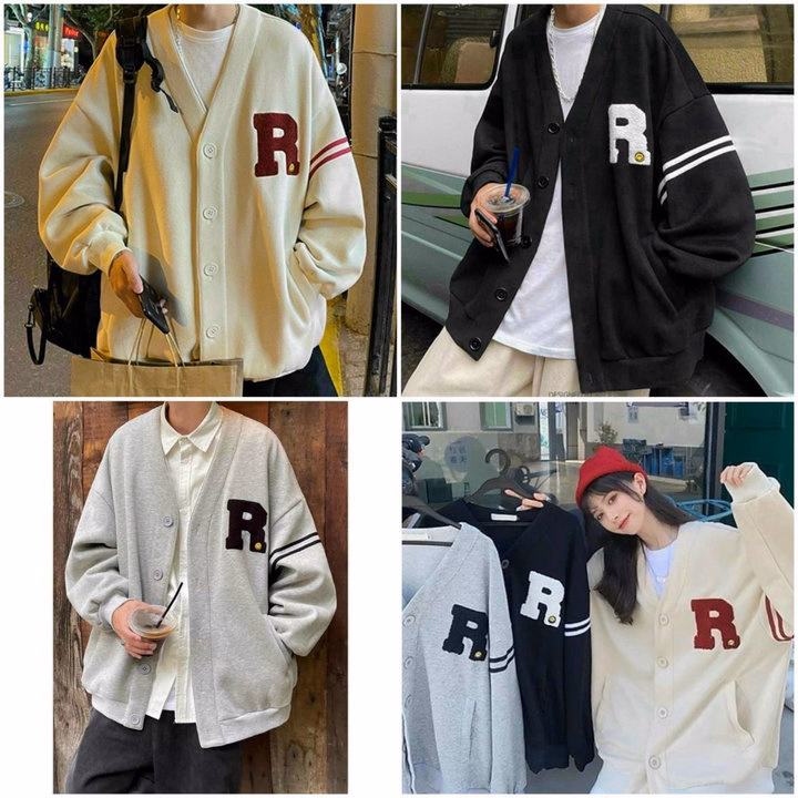 Áo Khoác Nỉ Cadigan Nam Nữ Nỉ Nút Cài Siêu Dễ Cổ Trái Tim In Chữ R Siêu Hot – Htm Fashion