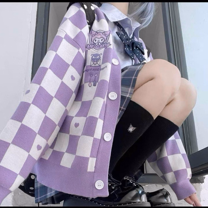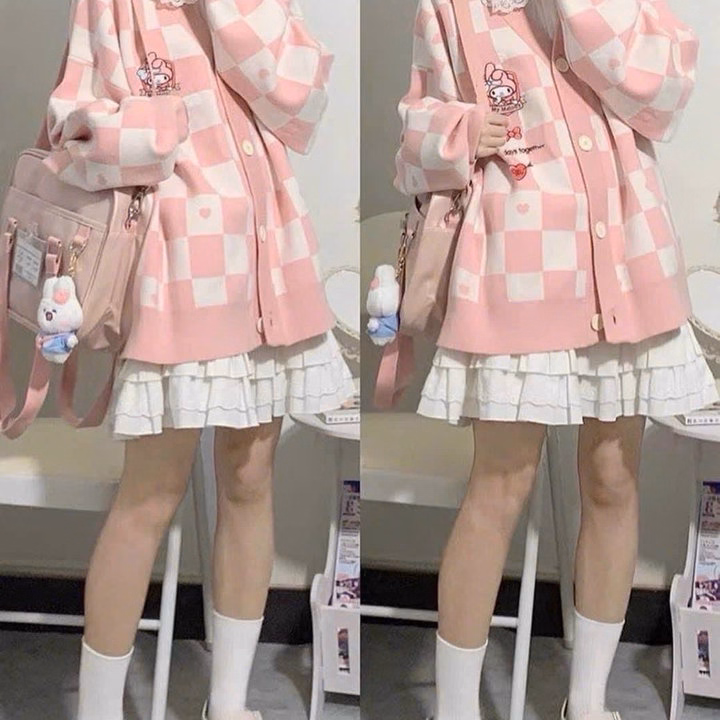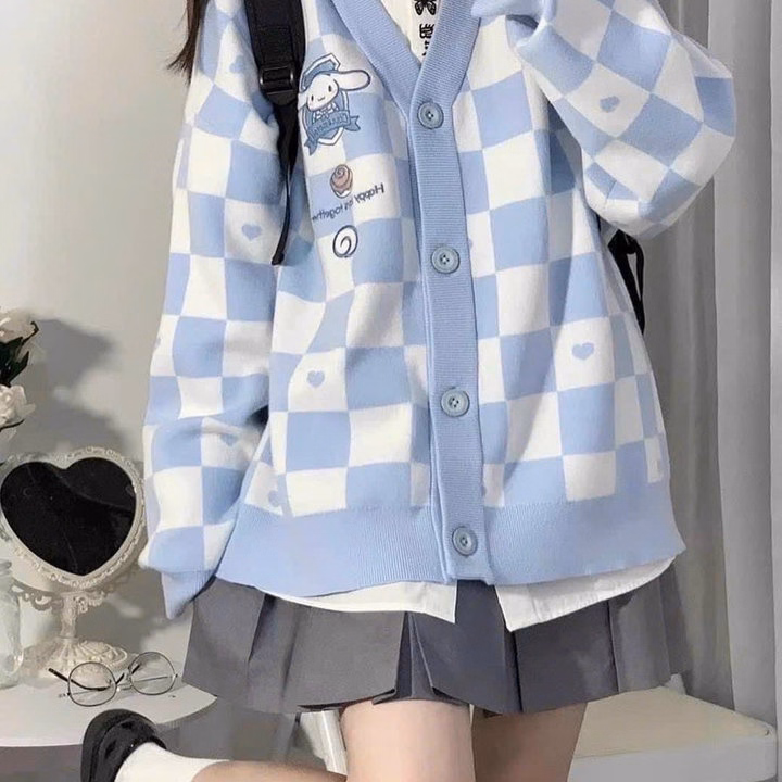 Áo Khoác Nỉ Cadigan Nữ Nỉ Sọc Caro In Hình Siêu Cute Thời Trang – Htm Fashion