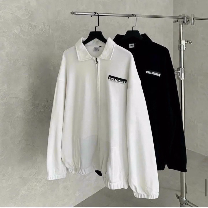 Áo Khoác Nỉ Cặp Đôi Nam Nữ Cổ Bẻ Phối Khóa Kéo In The Middle Chữ Nổi -Htm Fashion
