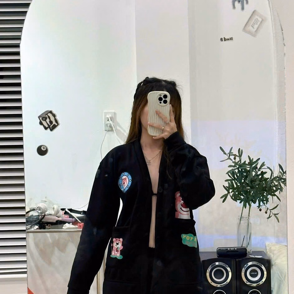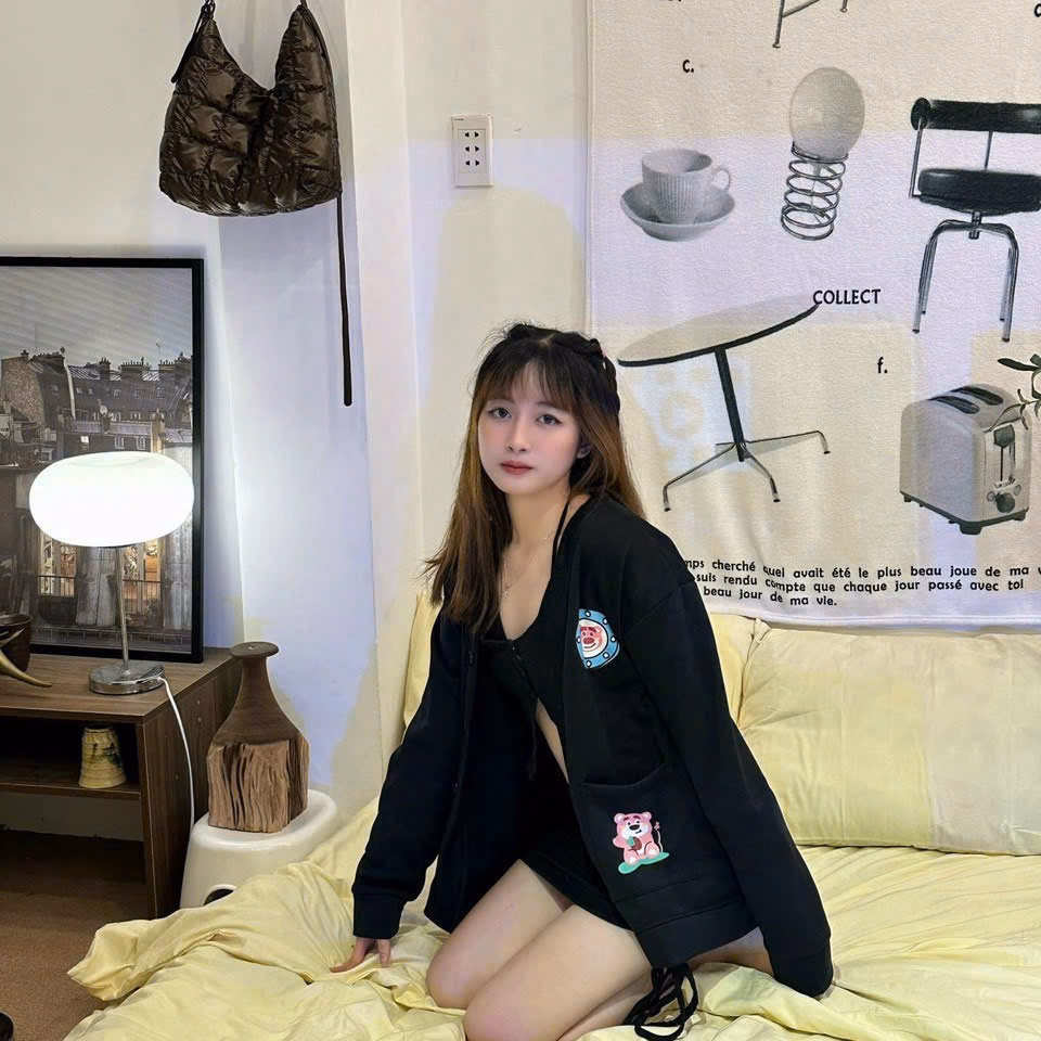 Áo Khoác Nỉ Cardigan Nữ Unisex Trước Áo Có In Hình Gấu Dâu Dễ Thương Với Chất Vải Nỉ Bông Mềm Mịn Và Dày Dặn Áo Đẹp Hàng Hot Trend-Htm Fashion