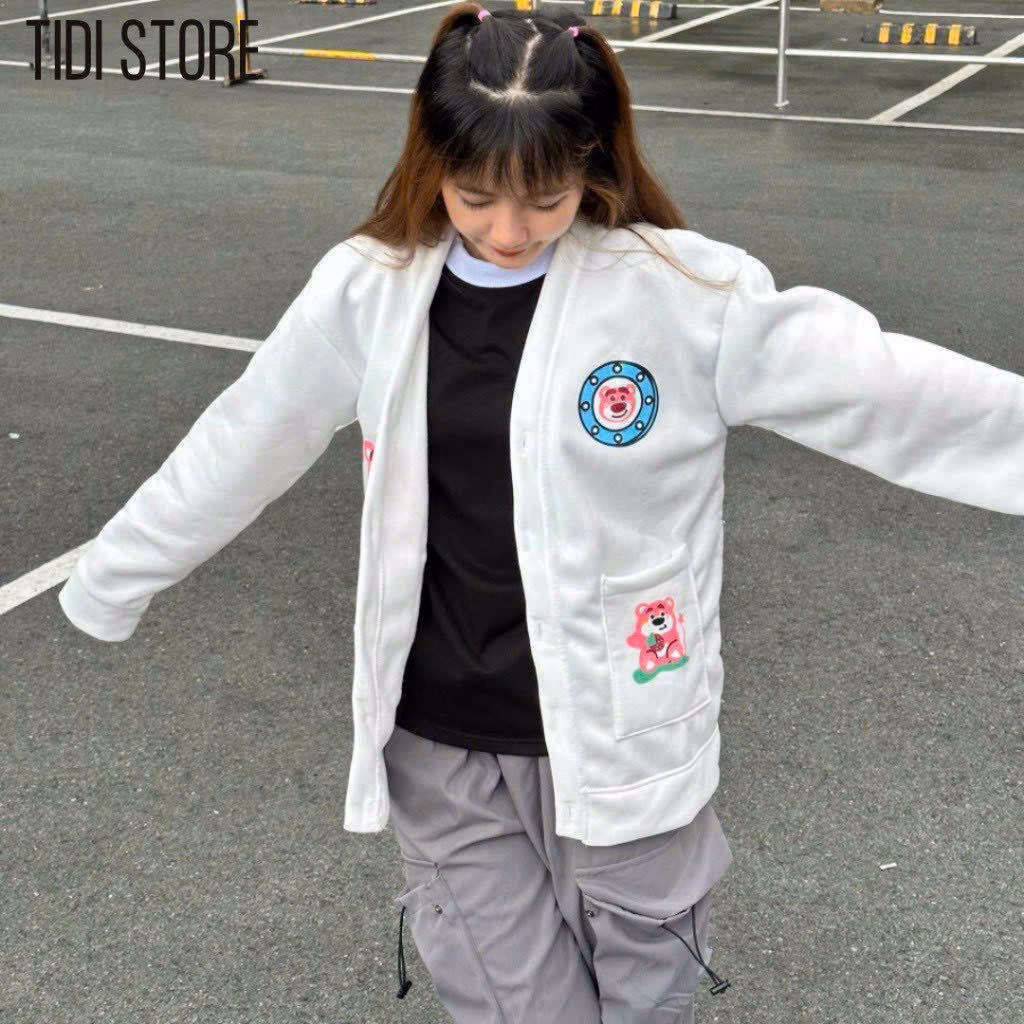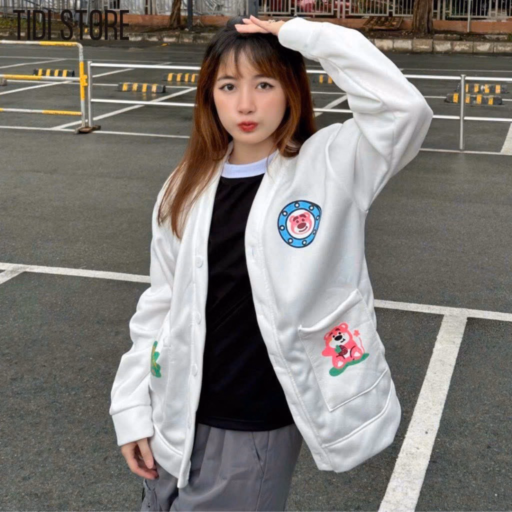 Áo Khoác Nỉ Cardigan nữ Unisex Trước Áo Có In Hình Gấu Dâu Dễ Thương Với Chất Vải Nỉ Bông Mềm Mịn Và Dày Dặn Áo Đẹp Hàng Hot Trend-Htm Fashion