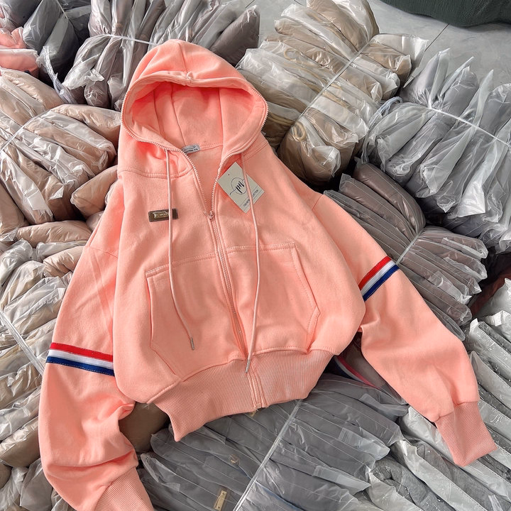 Áo Khoác Dây Kéo Vải Nỉ Phối Sọc Thân In Nổi Chữ Ở Mũ, Có Túi Trong Rộng Tp60 – Golden Dream