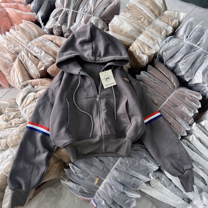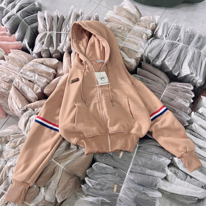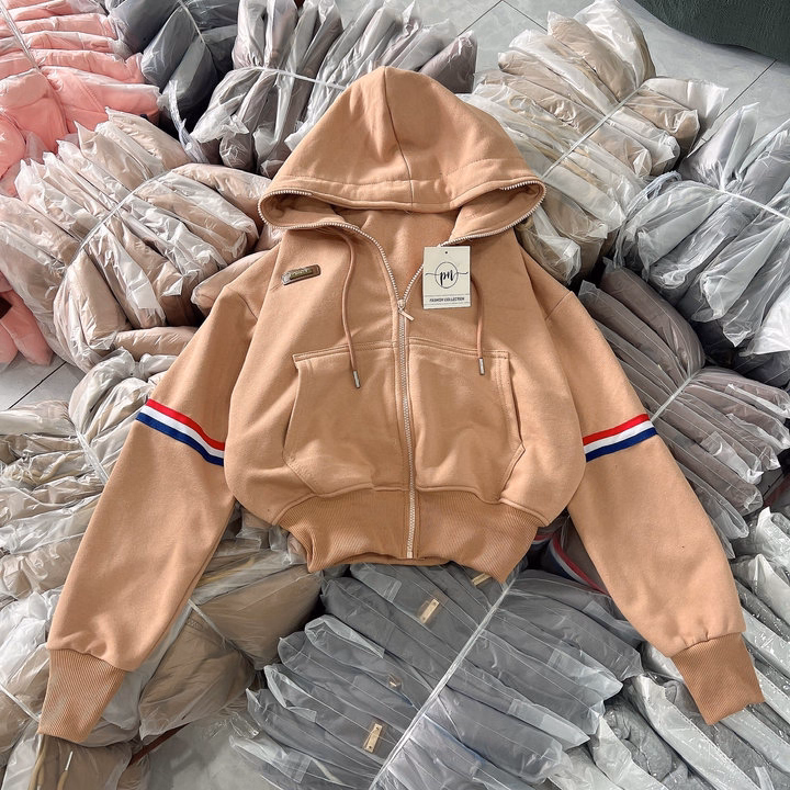 Áo Khoác Nỉ Chống Nắng Nữ Cổ Cao 4 Túi Phối Sọc Dày Dặn – Htm Fashion