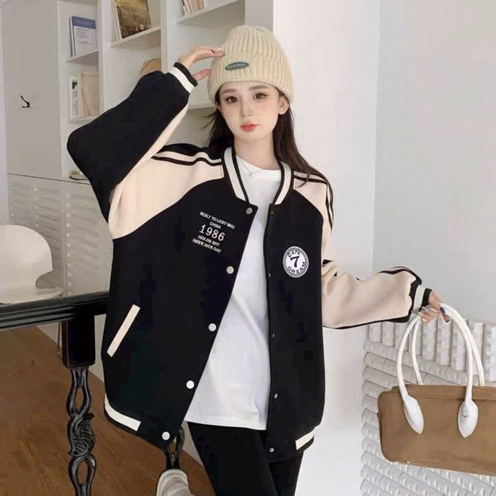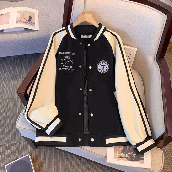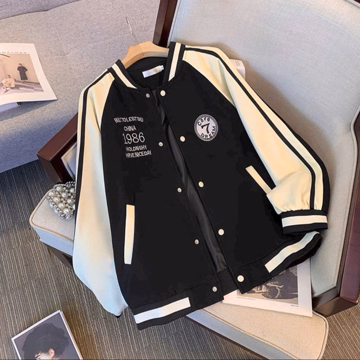 Áo Khoác Nỉ Cổ Bomber Bo Sọc Thêu Số 1986 Unisex Nam Nữ Ut66 – Golden Dream