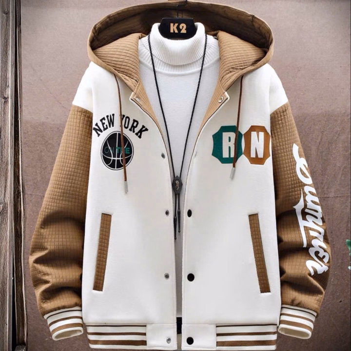 Áo Khoác Dây Kéo Vải Nỉ Phối Sọc Thân In Nổi Chữ Ở Mũ, Có Túi Trong Rộng Tp60 – Golden Dream