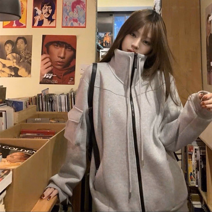 Áo Khoác Nỉ Cổ Trụ , Áo Khoác Cổ Cao Không Nón Phối Túi Hộp Unsiex Nữ Thời Trang Siêu Hot ( Có Túi Trong ) U36