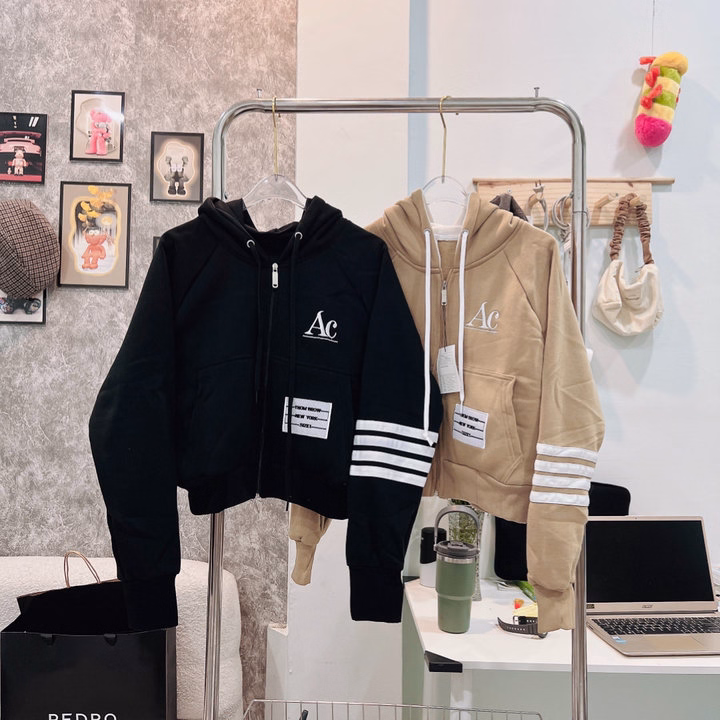 Áo Khoác Nỉ Croptop Dáng Lửng Thêu Ac Có Nón Chống Nắng – Htm Fashion