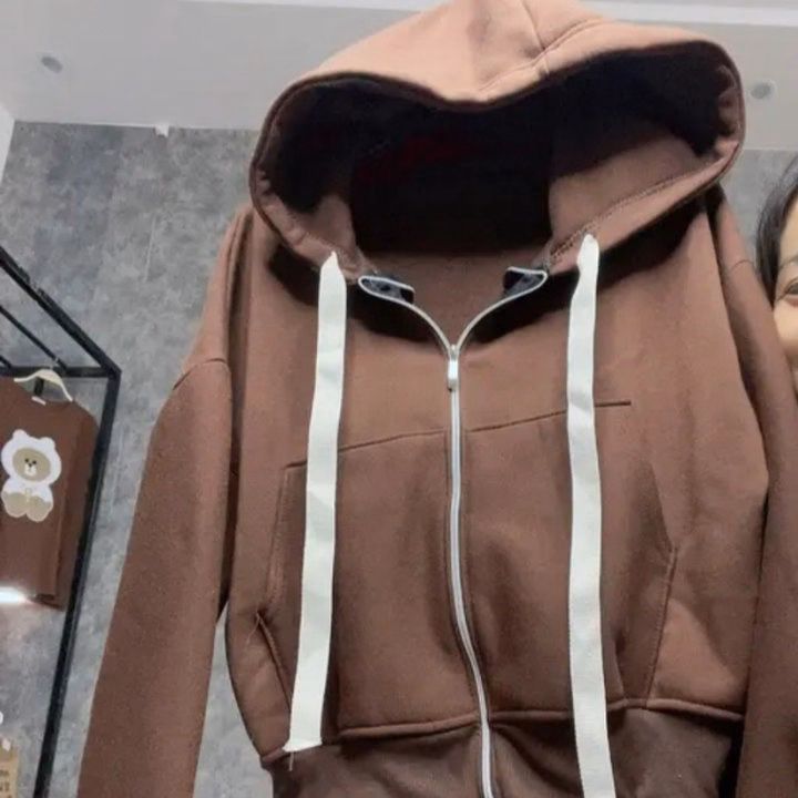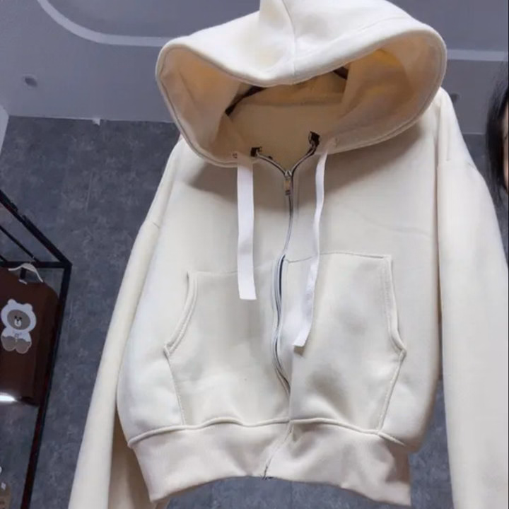 Áo Khoác Nỉ Dáng Ngắn Trơn Croptop Chống Nắng Mũ 2 Lớp Form Rộng