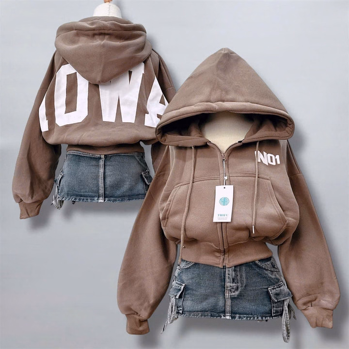 Tên sản phẩm: Áo Khoác Nỉ Dày Dặn Nữ Form Boxy Lửng In Chữ Nowa Hottrend Tp90