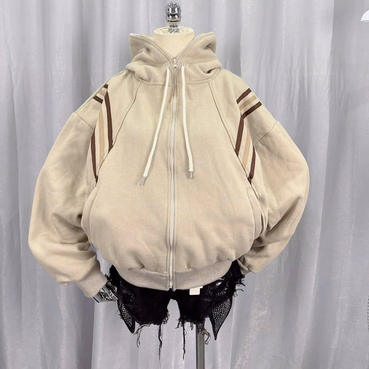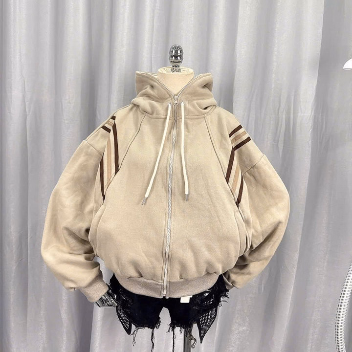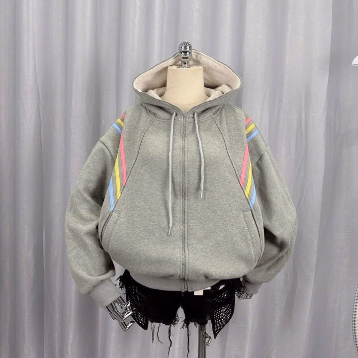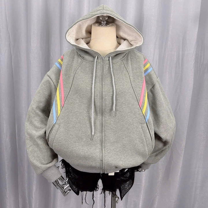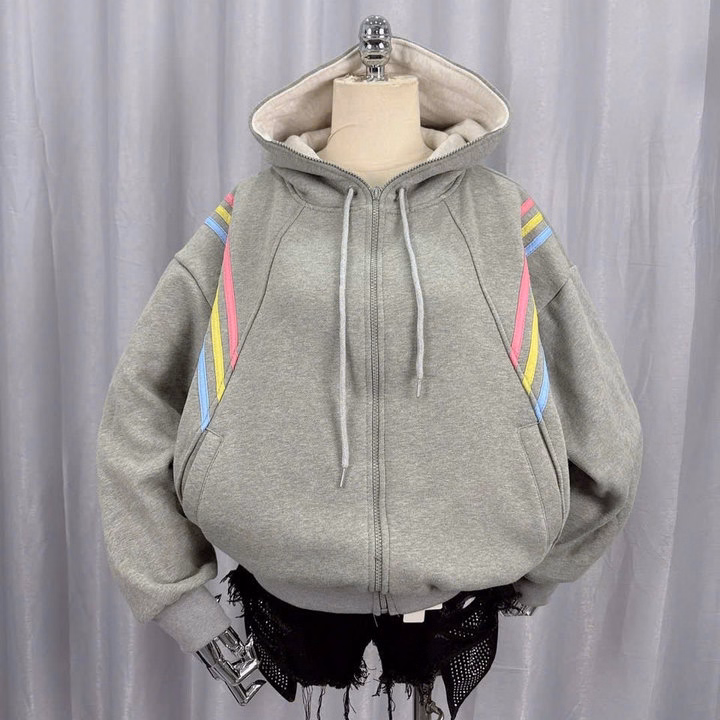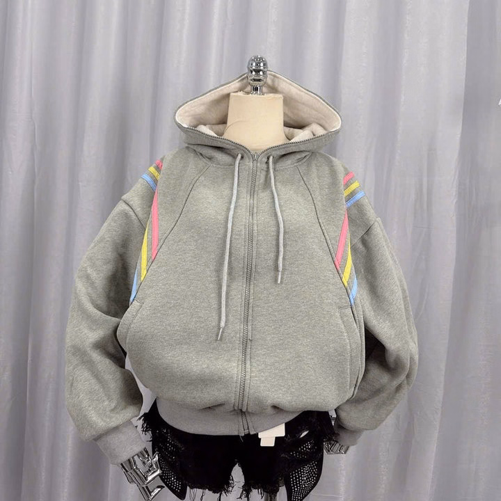 Áo Khoác Nỉ Dày Dặn Phối Viền 3 Sọc Bảy Màu , Nón To Rộng Mặc Chống Nắng Siêu Hot – Tp89