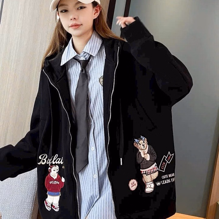 Áo Khoác Dây Kéo Vải Nỉ Phối Sọc Thân In Nổi Chữ Ở Mũ, Có Túi Trong Rộng Tp60 – Golden Dream