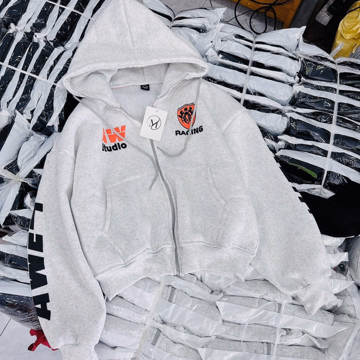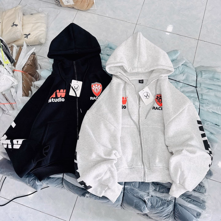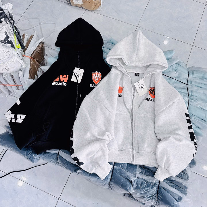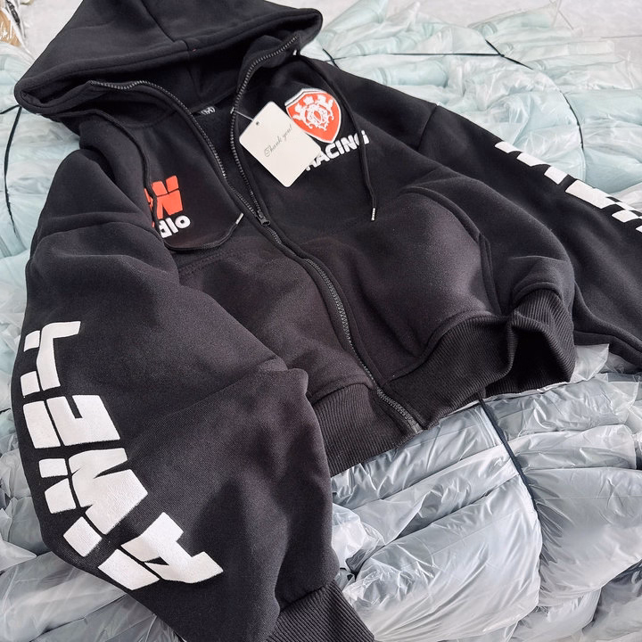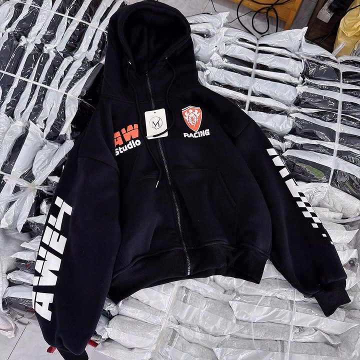 Áo Khoác Nỉ Dày Form Boxy Họa Tiết Racing Có Nón Rộng – Htm Fashion
