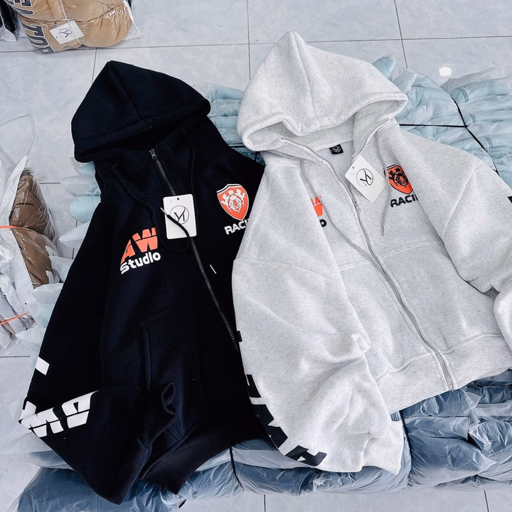Chiếc áo khoác hoodie nỉ unisex in chữ Racing là mẫu áo cực hot với thiết kế đậm chất đường phố, kết hợp logo nổi bật và họa tiết in chạy dọc tay áo mang cảm hứng từ các đội đua thể thao. Form oversize thời thượng, thích hợp cho cả nam và nữ mặc theo phong cách Hàn Quốc, cool ngầu và cá tính.