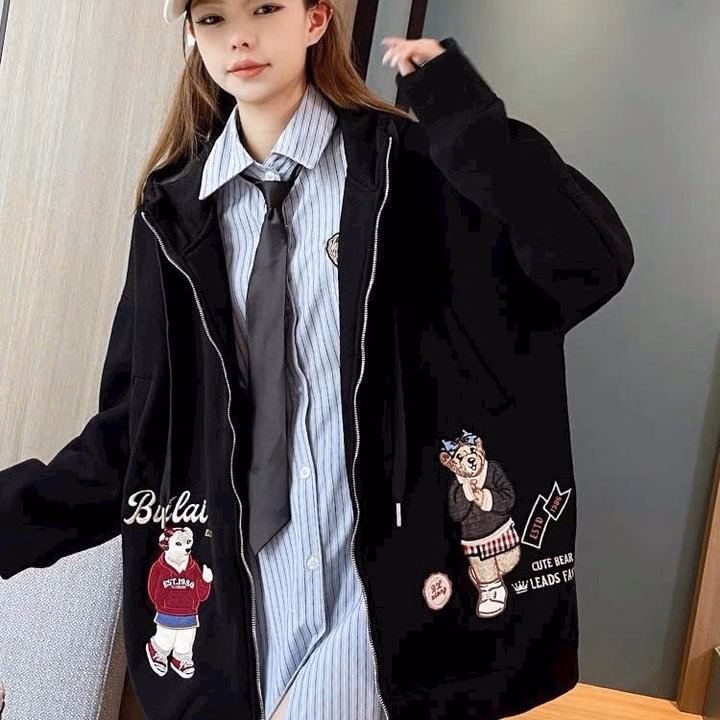 Tên sản phẩm: Áo Khoác Nỉ Dây Kéo Form Rộng Nam Nữ Thêu Hình Chú Cún Dễ Thương Ut23 – Phương Store