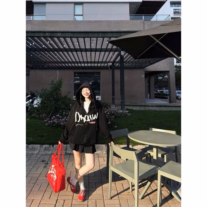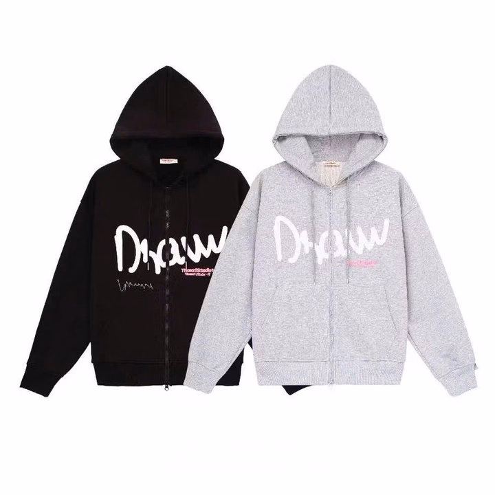 Áo Khoác Nỉ Dây Kéo Unisex Nam Nữ Vải Nỉ In Nổi Chữ Draw Form Rộng Tp45 – Golden Dream