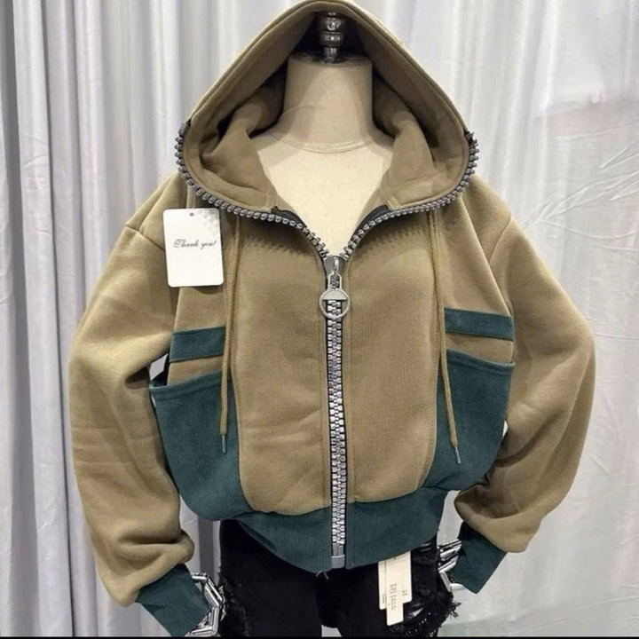 Áo Khoác Dây Kéo Vải Nỉ Phối Sọc Thân In Nổi Chữ Ở Mũ, Có Túi Trong Rộng Tp60 – Golden Dream
