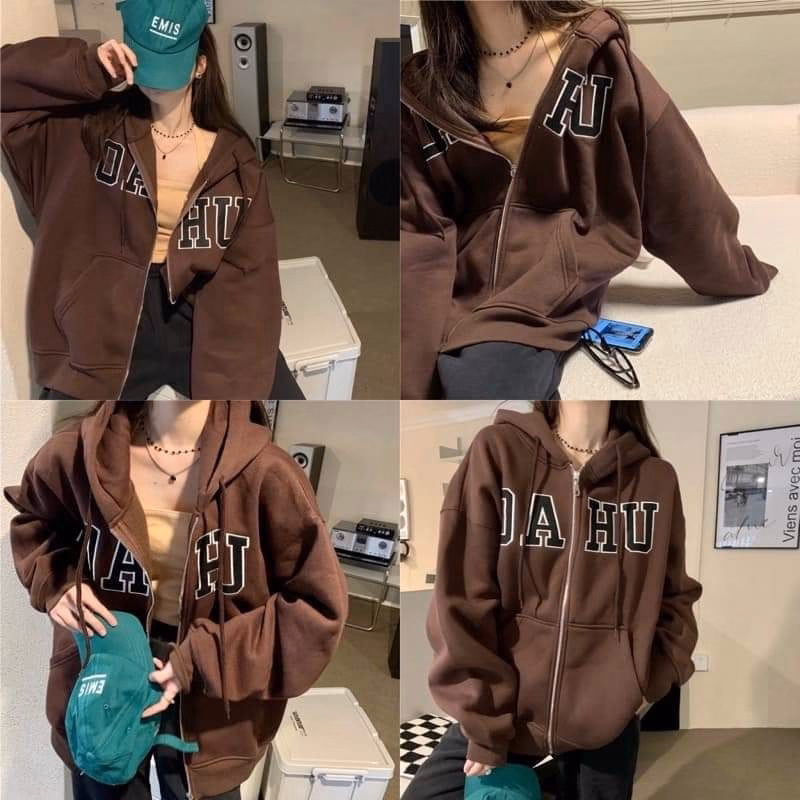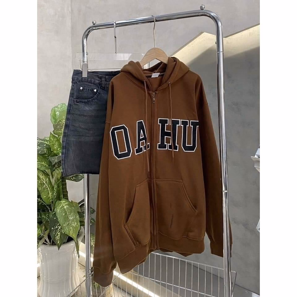 - Tên Sản phẩm: Áo khoác nỉ form rộng mũ 2 lớp chất nỉ chữ Oahu