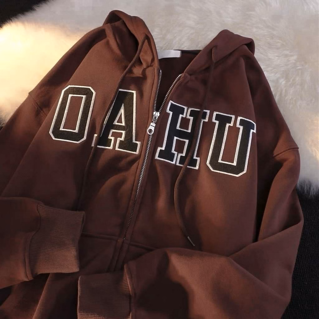 Áo Khoác Nỉ Form Rộng Mũ 2 Lớp Chất Nỉ Chữ Oahu