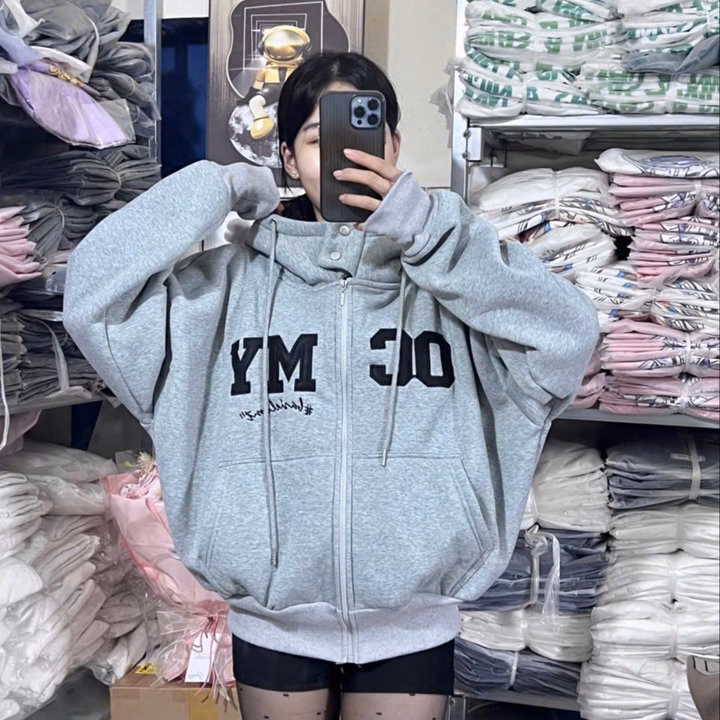 Áo Khoác Dây Kéo Vải Nỉ Phối Sọc Thân In Nổi Chữ Ở Mũ, Có Túi Trong Rộng Tp60 – Golden Dream