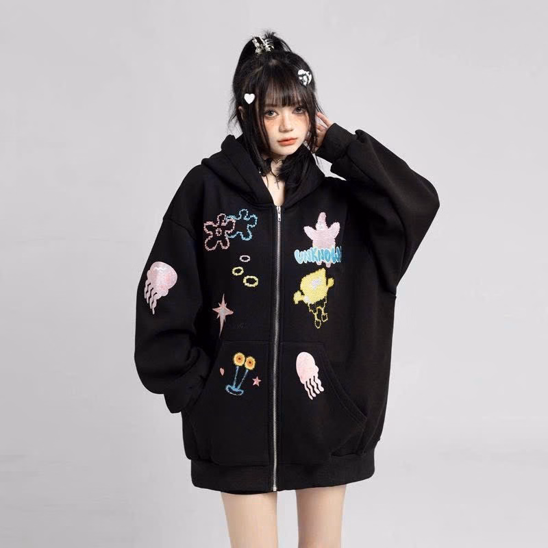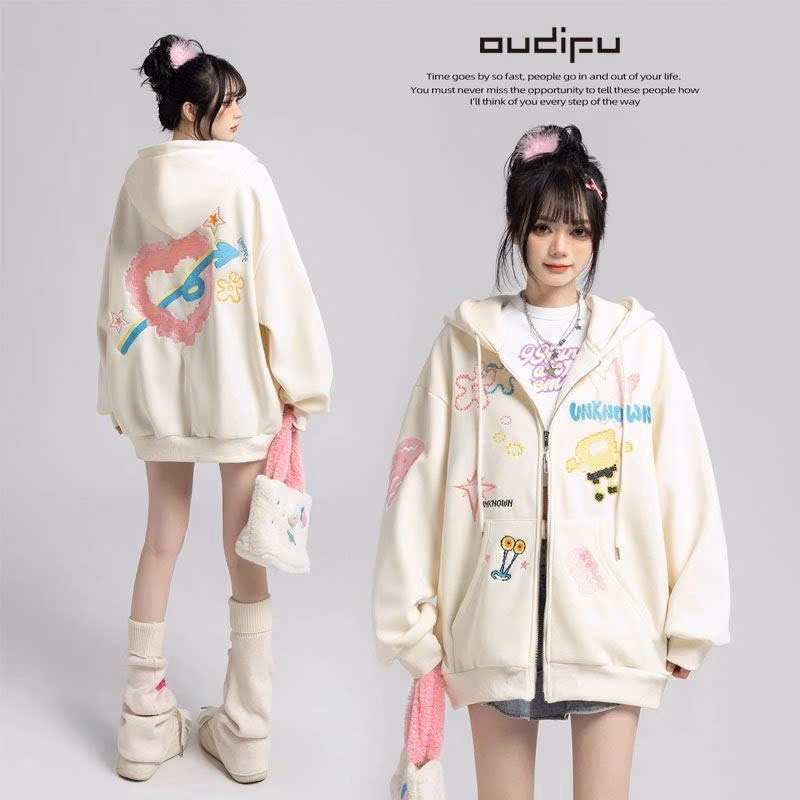 Áo Khoác Dây Kéo Vải Nỉ Phối Sọc Thân In Nổi Chữ Ở Mũ, Có Túi Trong Rộng Tp60 – Golden Dream
