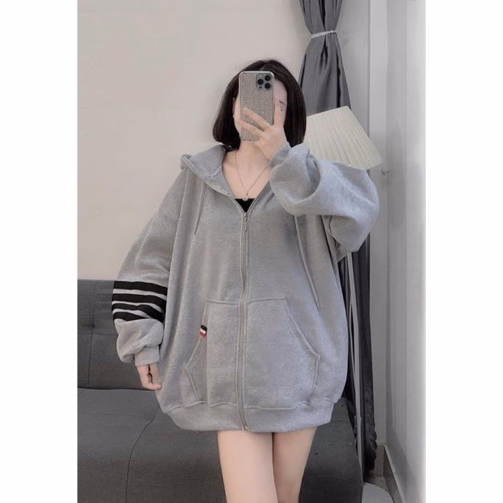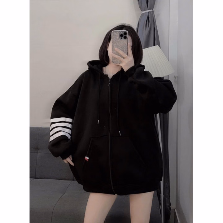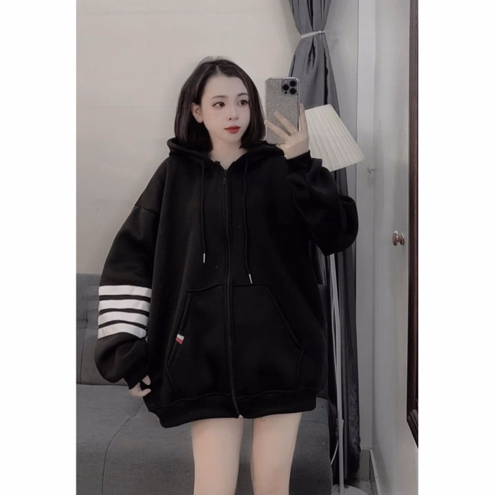 Áo Khoác Nỉ Hoodie Nam Nữ Có Nón Vải Thun Nỉ Ngoại Mềm Mịn Kẻ 5 Sọc Tay
