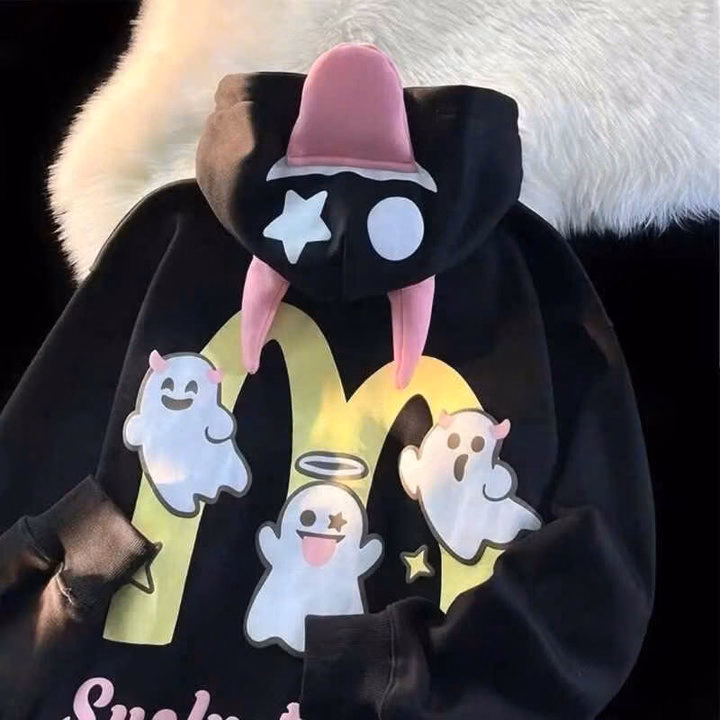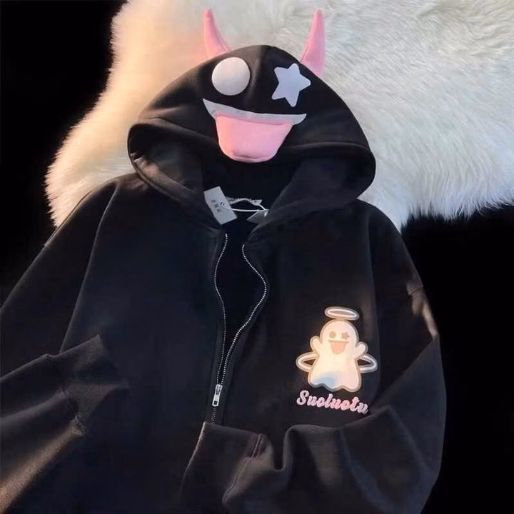 Áo Khoác Nỉ Hoodie Zip In Nổi Icon Ma Sừng Form Rộng Nam Nữ Unisex Mềm Mịn Xinh Xắn – Tp462