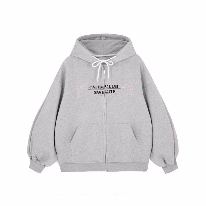 Áo Khoác Nỉ Hoodie Zip Thêu Nơ Clem Tay Phồng Form Rộng Ug82Yt-Nana House