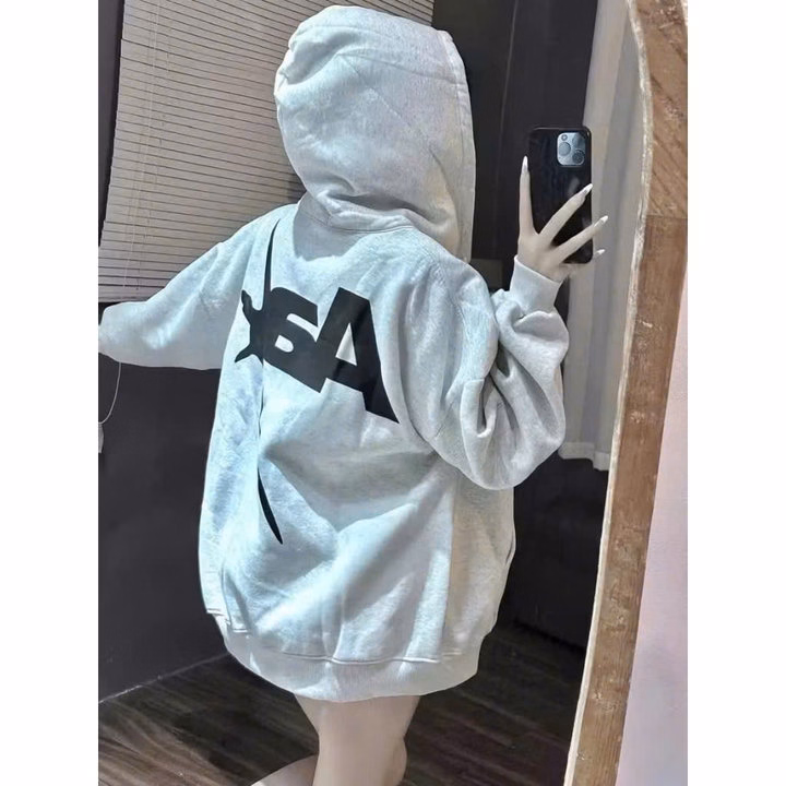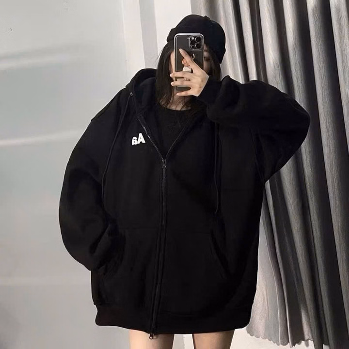 Áo Khoác Nỉ In Chữ Aa Unisex From Rộng Khóa Kéo Gu82Dr-Nana House