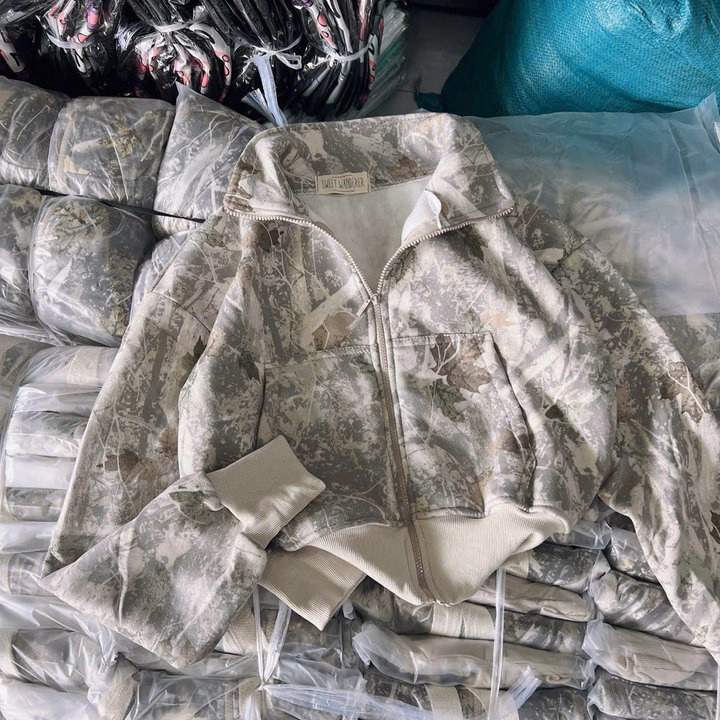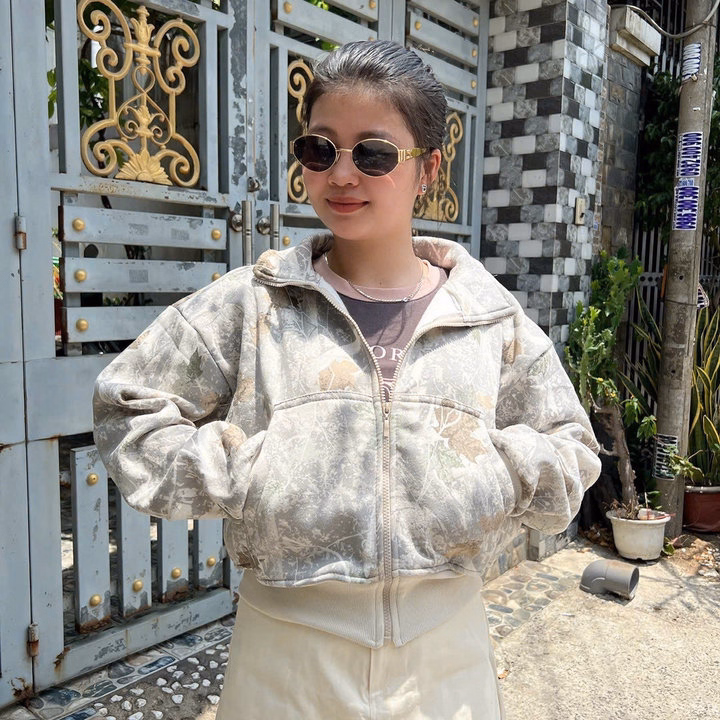 Áo Khoác Nỉ Lửng Loang Màu Croptop Có Nón Phối Khóa Kéo -Htm Fashion
