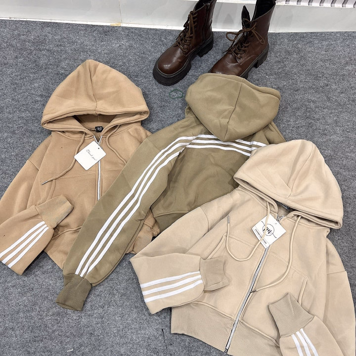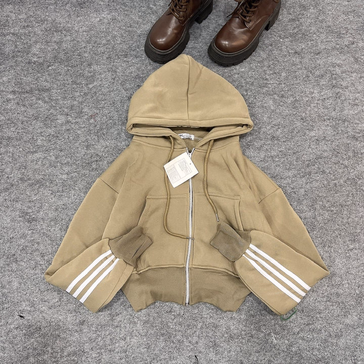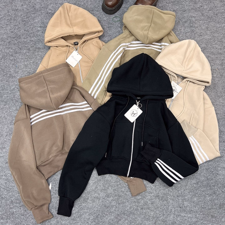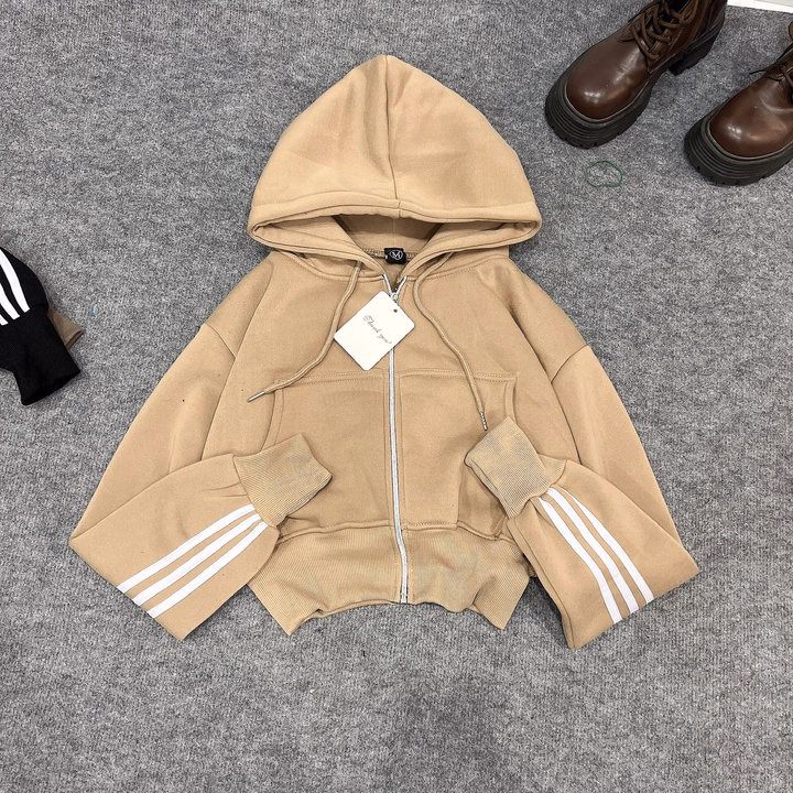 Áo khoác nỉ có mũ form croptop phối sọc thể thao – Năng động, cá tính, dễ phối đồ