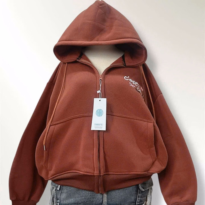 Áo Khoác Dây Kéo Vải Nỉ Dày Dặn In Chữ Full Lưng Unisex Nam Nữ Có Túi Trong Tp63 – Golden Dream